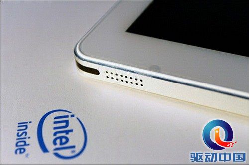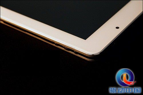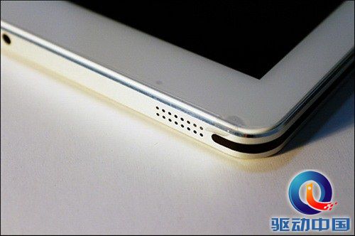 机身左边框下侧和右边框下侧是两个扬声器出口,整体声音效果非常的赞,可以说是笔者接触过的平板中效果最好的一款平板电脑。有人会说这两个位置不是在横屏手持的时候会堵住么?没关系,把机器旋转180°不就OK了?