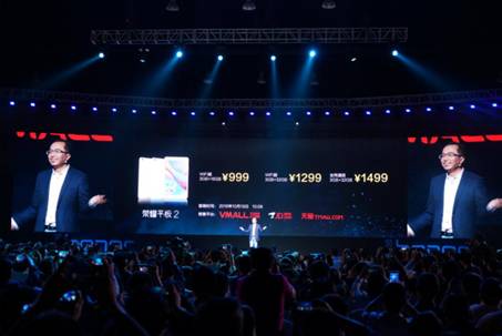 2016年10月18日,荣耀在西安举行新品发布会,正式推出3G大内存8核全网通平板——荣耀平板2,共有3GB+16GB WiFi版(珍珠白)、3GB+32GB WiFi版(香槟金)、3GB+32GB全网通版(香槟金)三个版本,售价分别为999/1299/1499元,超高的质价比无疑会在国内平板市场刮起一股新风。